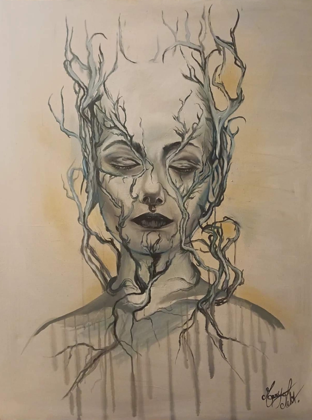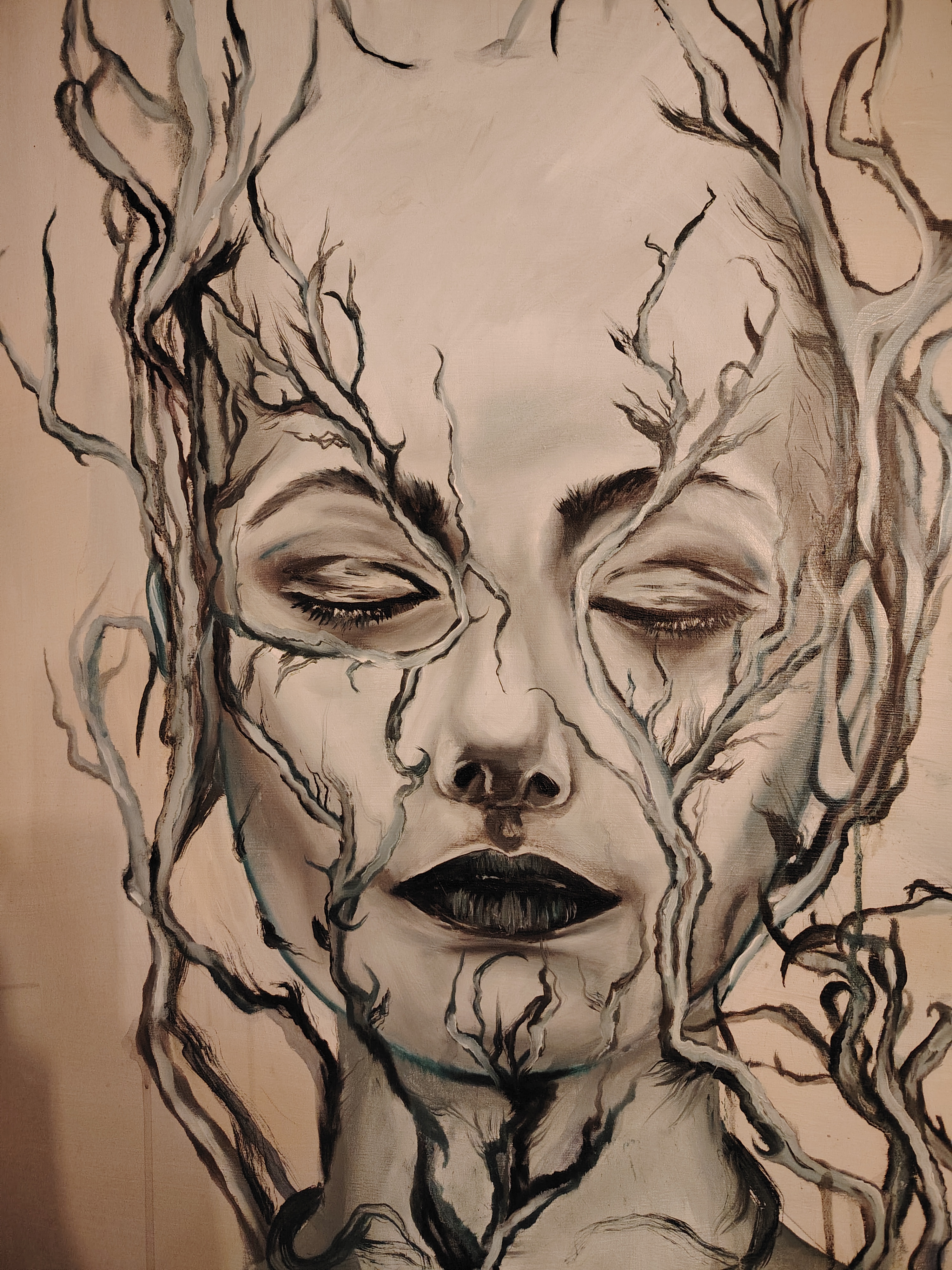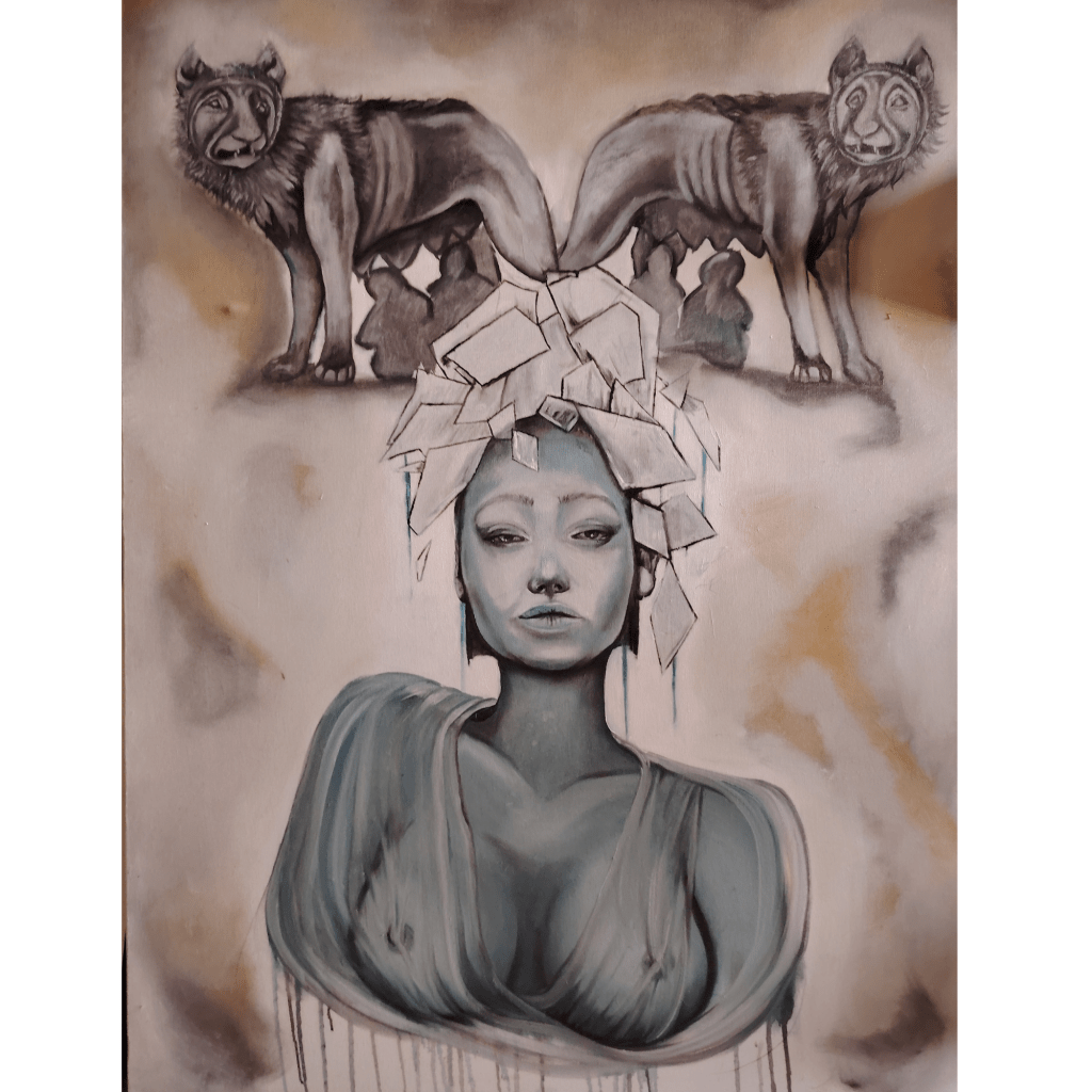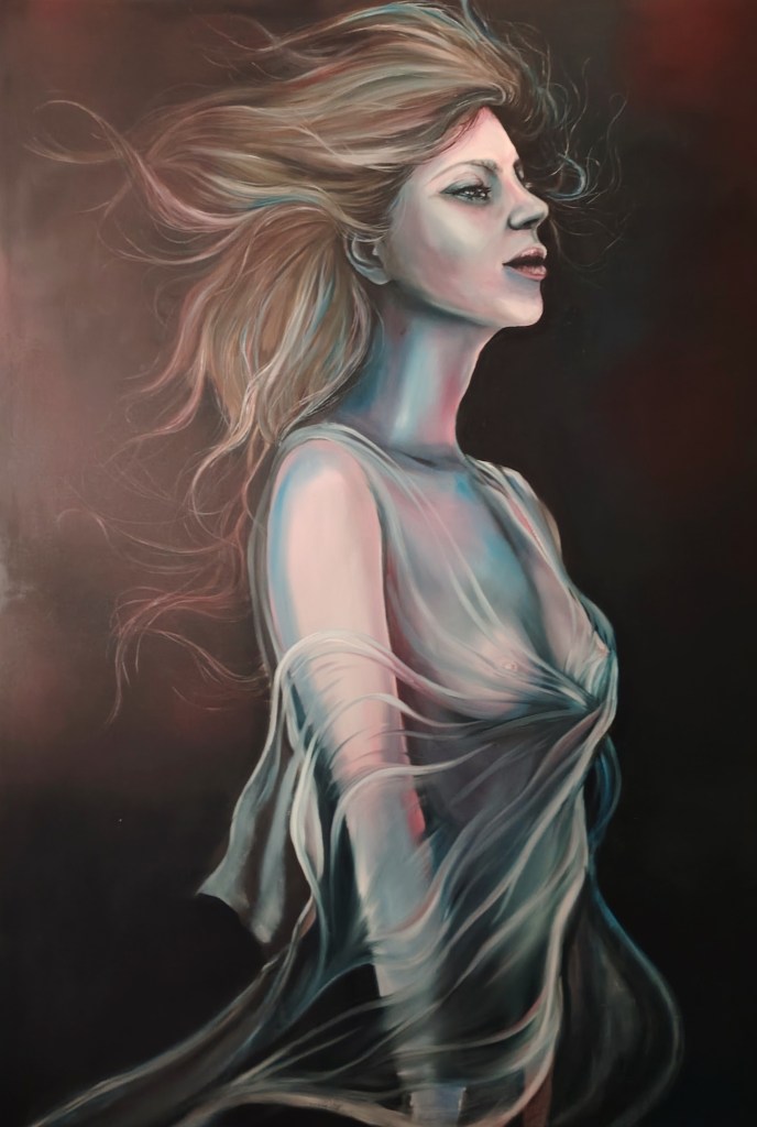 Dans cette peinture, j’ai dénaturé le côté humain de mon sujet pour en faire quelque chose de plus suggestif.