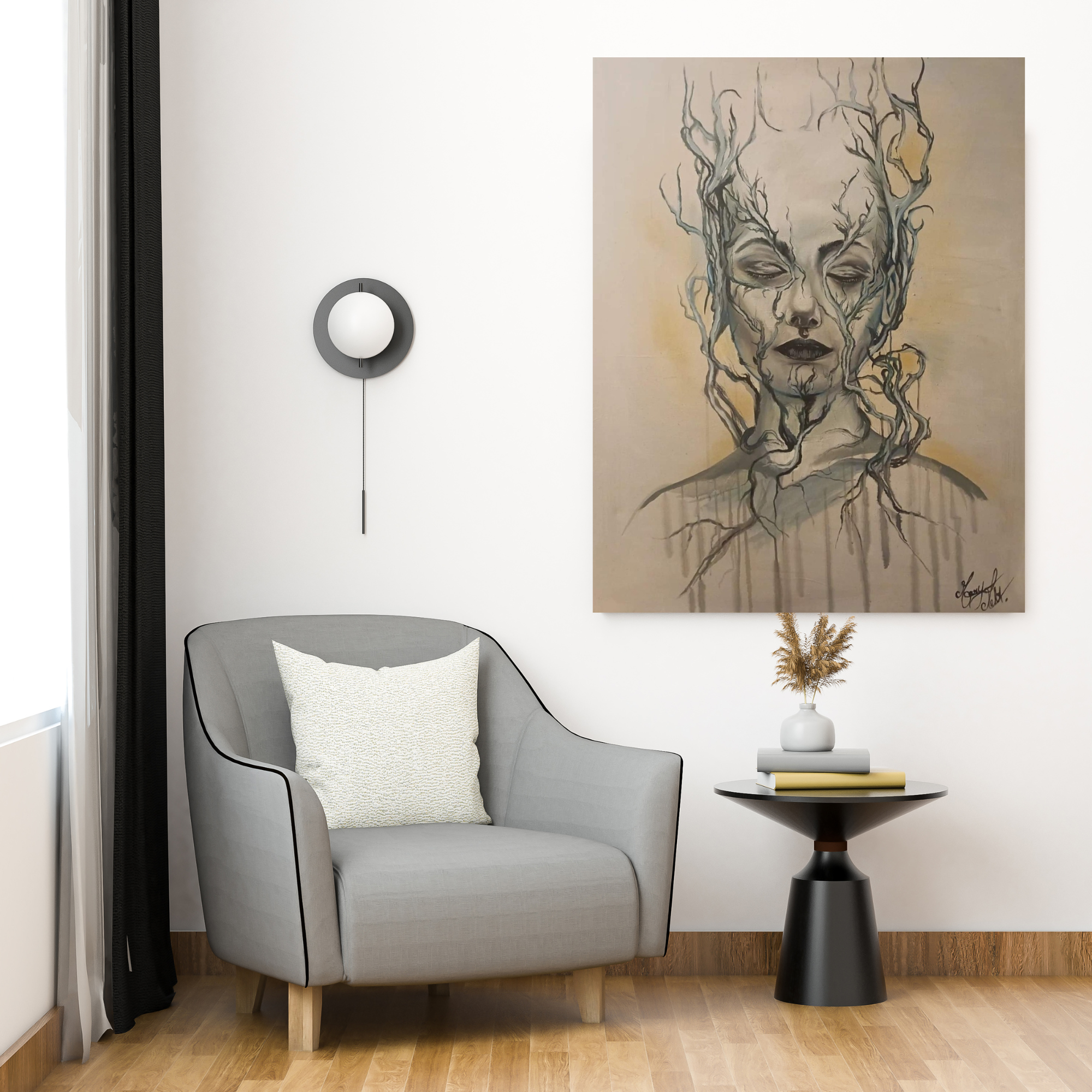 Forest est un mélange d’expression entre apaisement et souffrance, c’est un soutiens aux maladies auto-immunes. Les branches sont tordues mais représentent l’espoir.