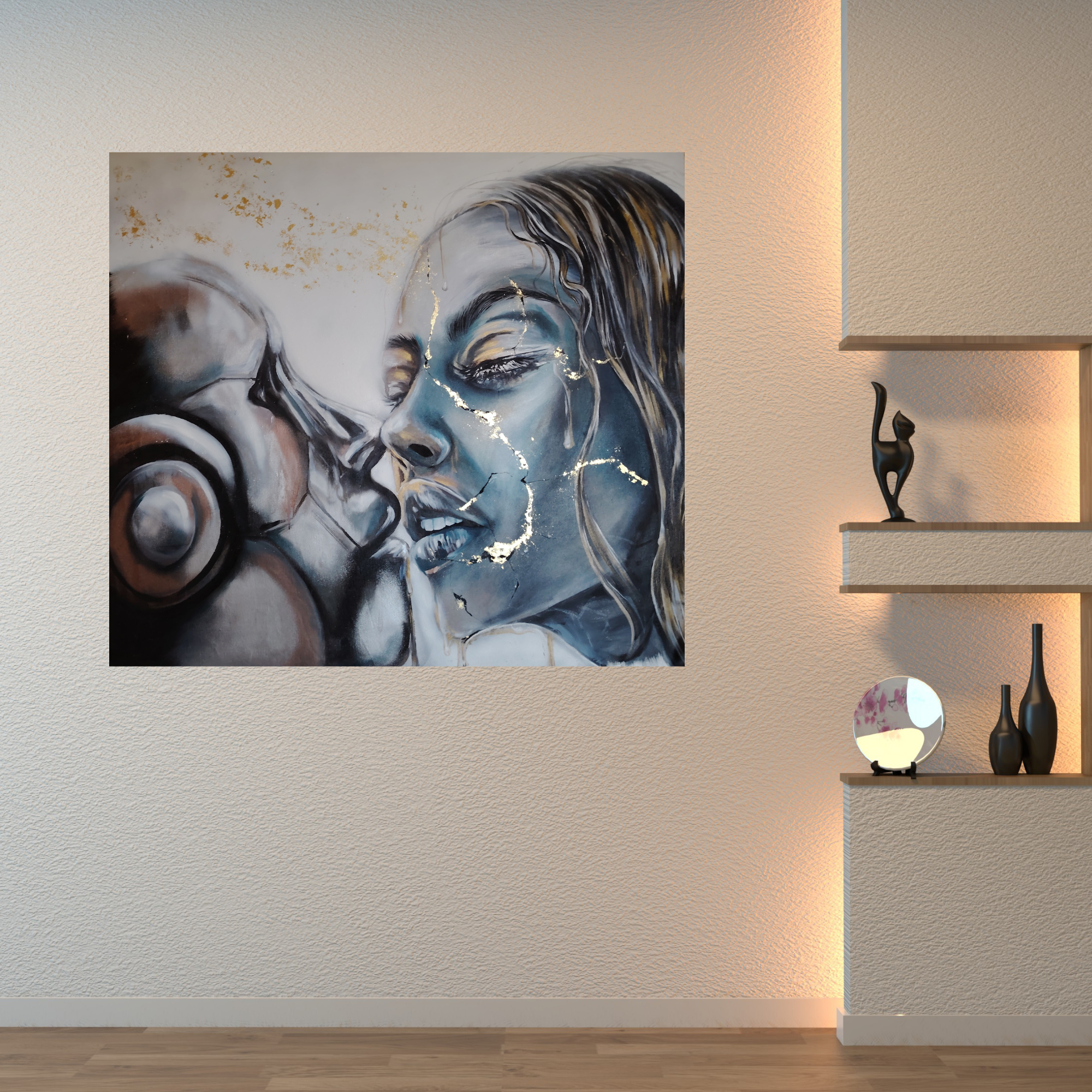 Un paradoxe de l’amour, deux êtres si différents mais pourtant si amoureux. Ici, j’ai représenté une machine (un robot) et une femme, l’embrassant. Je voulais surtout décrire que peu importe à quel point c’est différent en amour, cela n’a pas d’importance, la chose la plus belle est ce que vous ressentez pour l’autre personne. Il y a aussi un petit clin d’œil à l’intelligence artificielle qui devient de plus en plus réelle.